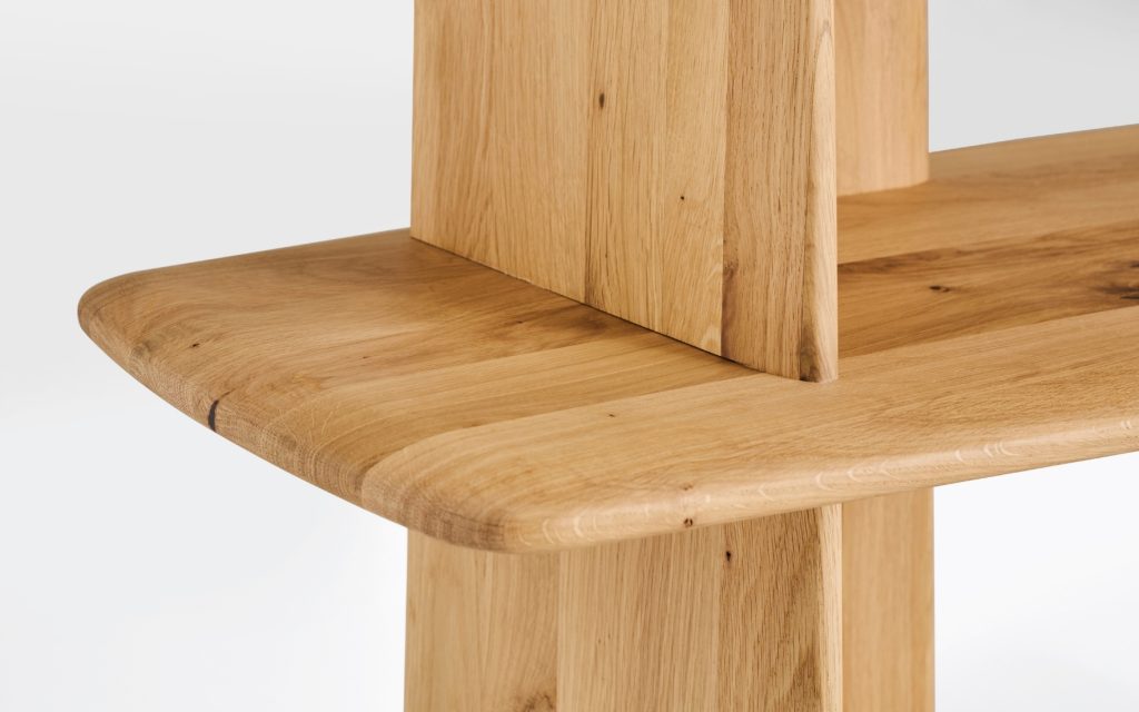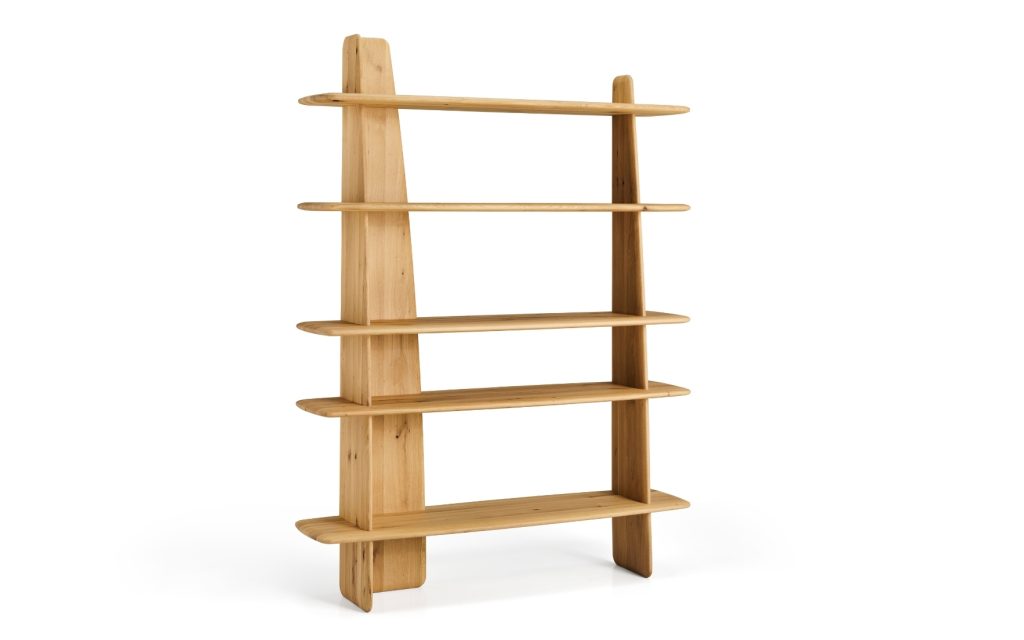 5 étagères – Pieds, montants et étagères : chêne massif – Finition unique : Chêne Organic.