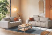 Avec ses lignes fluides, le canapé incurvé UTAH est l’élément central du salon, autour duquel la vie s’organise : on s’y installe pour lire, on s’y retrouve pour discuter ou simplement pour déconnecter. Son tissu chenillé matelassé habille une assise généreuse qui offre un maintien équilibré pour chaque moment de détente. Déclinable dans une vaste gamme de tissus et en trois largeurs, il s’adapte à vos envies et peut se compléter d’une têtière ou d’un pouf assorti.