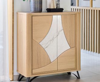 Résultat d’une grande recherche en termes d’identité, l’enfilade ESCALE associe caractère et agencement bien pensé. Ne vous laissez pas surprendre par son habile jeu de 3 tiroirs en trompe-l’œil conçu pour rompre la monotonie, cette enfilade en chêne massif se compose bel et bien de 4 portes, disponibles en version bois ou cannage, surplombées de 2 grands tiroirs à la finition contrastée. D’une belle longueur de 223,5 cm, ce meuble habillera efficacement un mur de votre pièce de vie, en vous offrant de grands rangements à l’abri des regards et de la poussière.