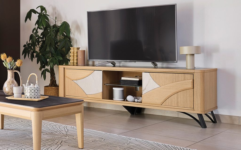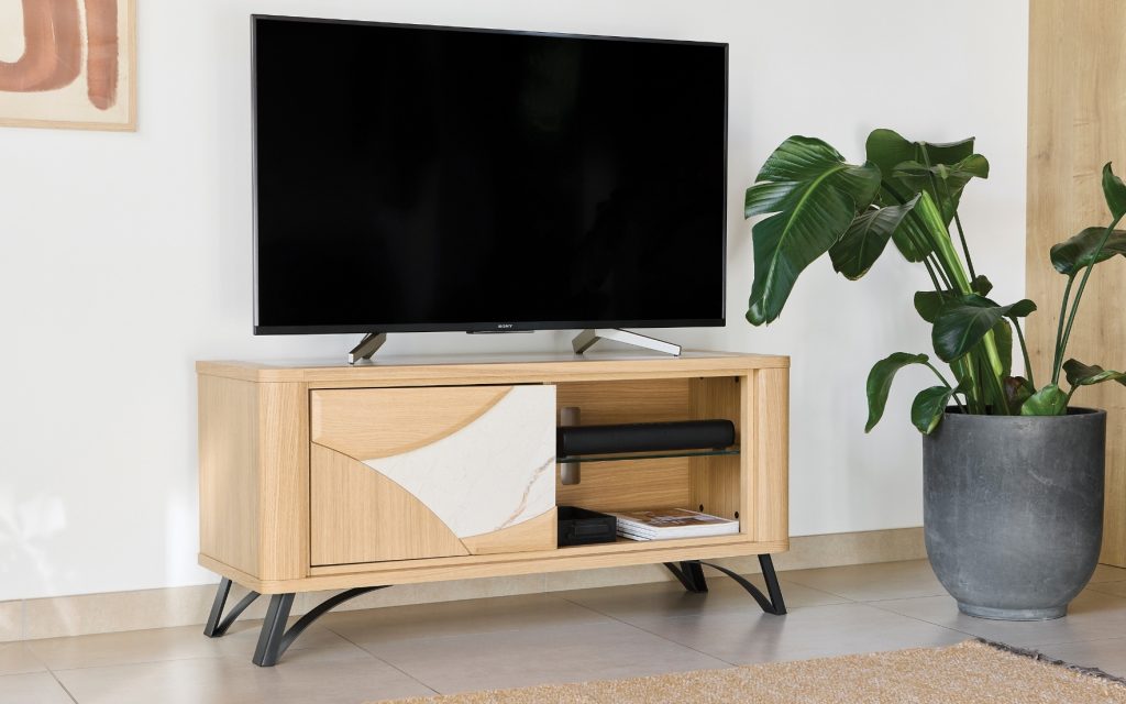 Le meuble TV Hifi RIVIERA combine esprit contemporain et praticité. Il accompagne vos films, playlists et soirées en apportant une touche chic à votre salon. Et si votre pièce est petite, bonne nouvelle : une version 1 porte, plus compacte, existe aussi, sans compromis sur le style !