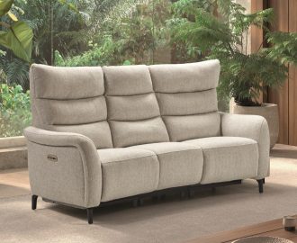 Structure en hêtre et panneaux de particules – Pieds en plastique – Suspensions assise ressorts nosag, dossier sangles – Garnissage polyuréthane assise 30 kg/m³, dossier 25 kg/m³, accoudoirs 20 kg/³ – Disponible en canapé fixe ou relaxation électrique en longueur 202 cm, 192 cm, 172 cm, 144 cm, fauteuil et pouf assorti