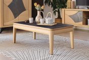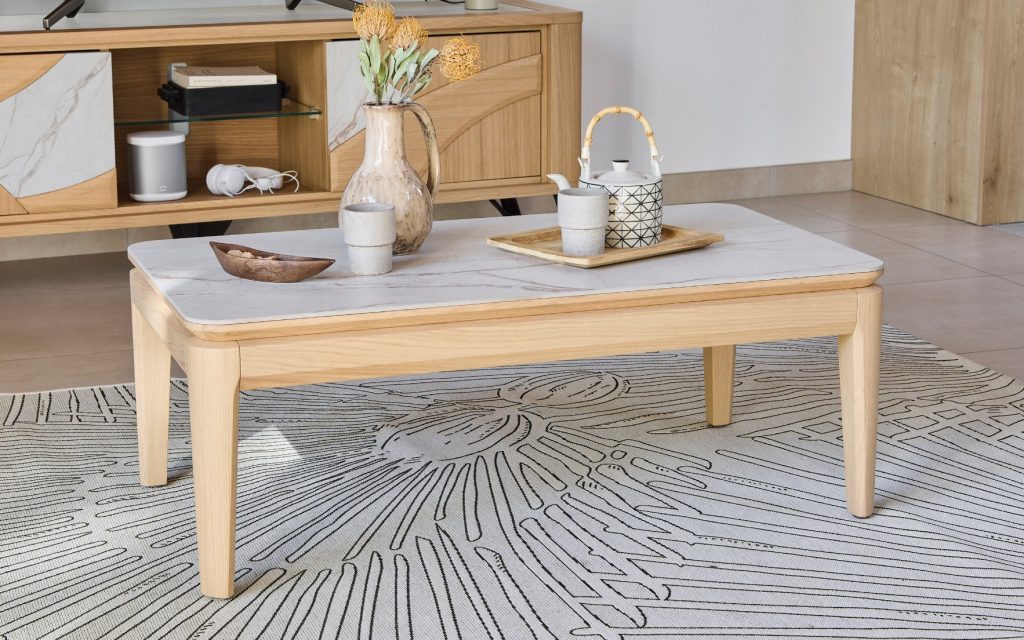 La table basse RIVIERA illustre à merveille cet équilibre entre modernité et élégance. Fonctionnelle et raffinée, elle offre une surface généreuse pour vos instants de convivialité. Son piètement en tilleul massif plaqué chêne met en valeur une silhouette contemporaine aux lignes accueillantes.