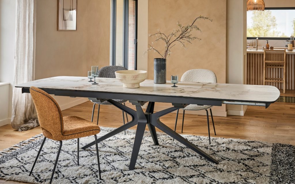 Laissez-vous charmer par la table extensible LAGOS, une merveille de design contemporain. Son piètement en métal se marie parfaitement à son plateau en céramique, offrant à la fois élégance, robustesse et fonctionnalité au quotidien. Des invités surprises ? Son allonge coulissante de 80 cm se déploie en un clin d’œil pour accueillir tous vos convives avec style et confort.