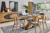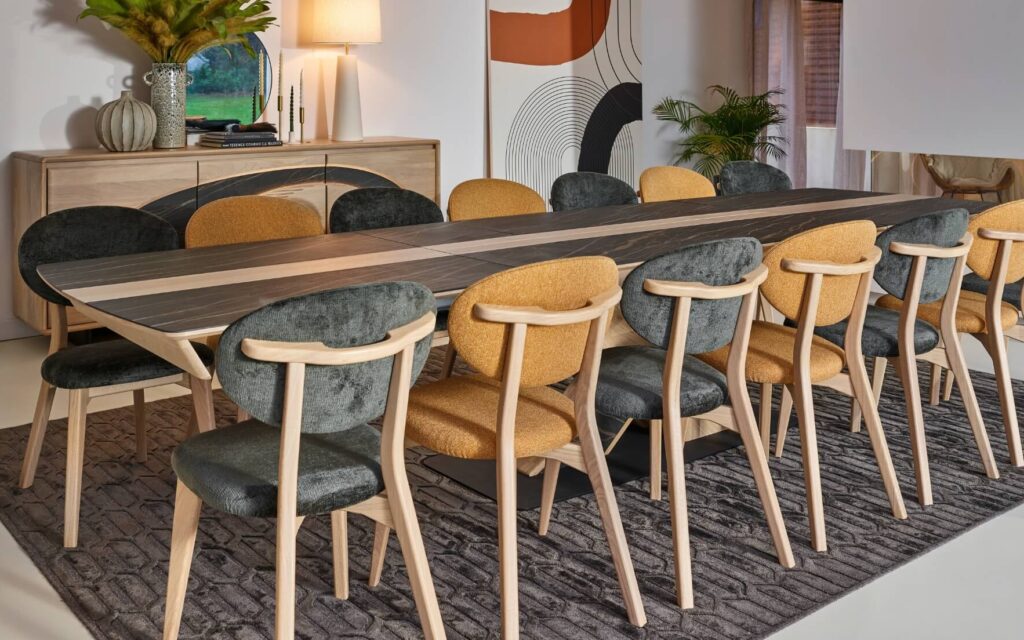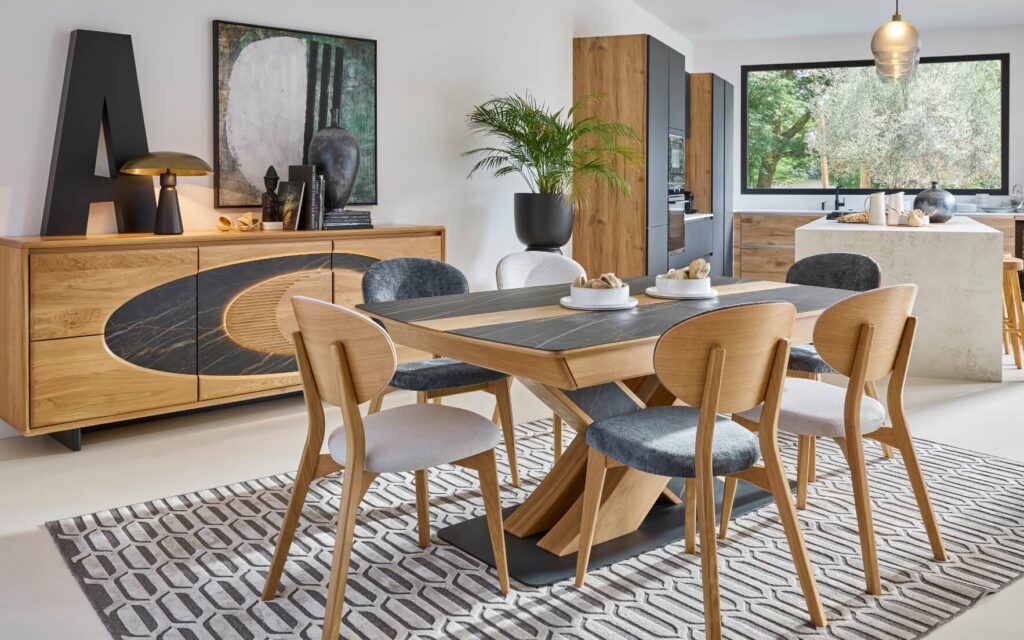 Faites de chaque repas un moment d’exception avec la table extensible THALES. Pièce centrale d’une collection où le design contemporain rencontre les matériaux nobles, cette table allie élégance naturelle et fonctionnalité au quotidien. Avec son plateau en céramique marbrée souligné d’un chemin de table en chêne massif et son piètement sculptural en chêne massif incrusté de céramique, la table THALES joue sur les contrastes : matières, volumes et lumières s’accordent dans un équilibre subtil. Proposée en plusieurs finitions et teintes, elle s’adapte à tous les styles de décoration. Et quand le nombre de convives change, la table THALES change aussi : grâce à son allonge portefeuille, elle passe de 180 à 280 cm, prête à accueillir tous vos moments partagés. Découvrez-la également en version 220 cm avec une ou trois allonges, pour une capacité d’extension jusqu’à 380 cm !