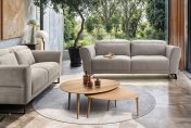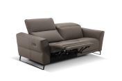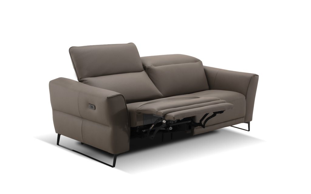 Structure : sapin massif et panneaux de particules – Assise sur suspension Nosag – Coussinage : assise mousse souple 35 kg/m³ (mousse ferme 32 kg/m³ en option), dossier 21 kg/m³ – Dossier cale-reins – Têtières relevables – Accoudoirs évasés – Piétement luge disponible en deux finitions : Titanium ou Chrome – Plusieurs dimensions et configurations possibles – Pouf assorti carré ou rectangulaire – Grand choix de tissus et de cuirs – Se décline en version bicolore et bi-matière – Existe en version relaxation avec 1 ou 2 relax électriques – Système de relaxation « dos au mur » – Alimentation sur batterie en option.