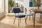 La chaise de salle à manger HONEY est dotée d’une élégante poignée en métal noir à l’arrière et se décline en six coloris tendance : Saphir, Gris clair, Gris foncé, Terracotta, Safran et Kaki. Son design apportera une vraie personnalité à votre intérieur. Osez mixer deux ou trois coloris de chaises pour créer un ensemble dépareillé très actuel.
