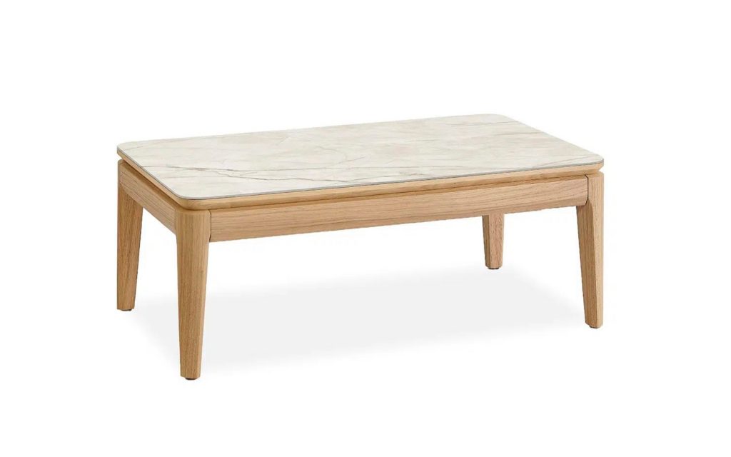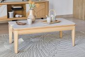 La table basse RIVIERA illustre à merveille cet équilibre entre modernité et élégance. Fonctionnelle et raffinée, elle offre une surface généreuse pour vos instants de convivialité. Son piètement en tilleul massif plaqué chêne met en valeur une silhouette contemporaine aux lignes accueillantes.