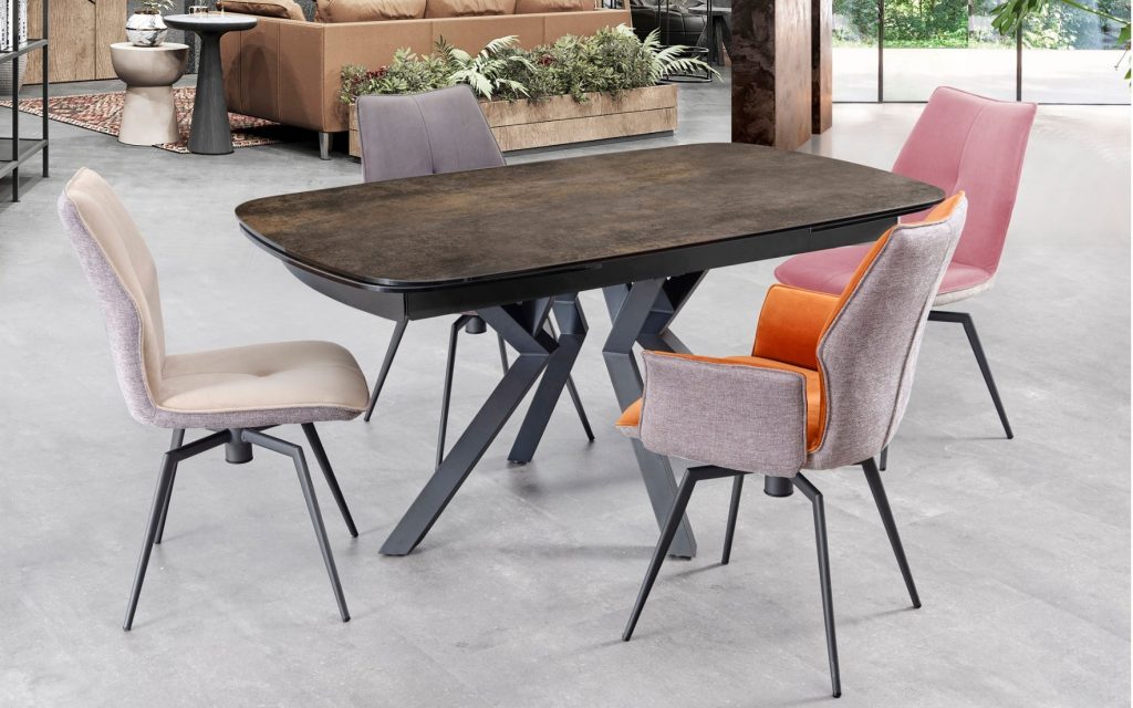 2 allonges en bout escamotables de 40 cm – Plateau céramique ép. 13 mm – Piètement fer finition époxy gris anthracite – Pieds en croix ouvert – Céramique collée sur un verre d’ép. 10mm – 4 coloris disponibles : iron, ton chêne naturel, gris nuancé et blanc marbré – Longueur table ouverte avec 1 allonge : 200 cm – Longueur table ouverte avec 2 allonges : 240 cm – Existe aussi en longueur 190 cm, avec deux allonges de 50 cm.